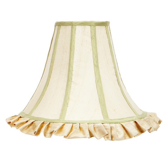 Large Shade - Ruffled Bell Shape - Ivory with Sage Green Trim
