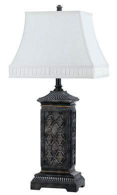 Beaux Arts One Light Table Lamp in Dark Antique Copper over Hammered Cast Metal