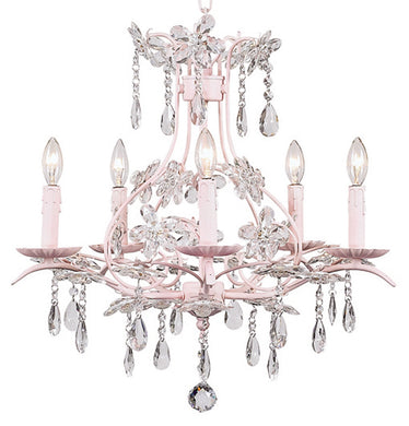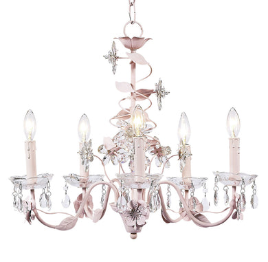Crystal Flower Five Light Chandelier Crystal Flower in Pink