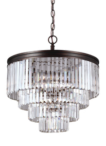 The Manufacturer Collection six light multi tier chandelier in burnt sienna is an ENERGY STAR� qualified lighting fixture that uses fluorescent bulbs to save you both time and money. The dazzling and timeless Collection lighting collection by Manufacturer features a cascade of faceted, linear glass crystals delivering the ultimate sparkle without the fuss of traditional crystal. The sleek, contemporary silhouette adds drama and excitement to any ?��room?��without upstaging the beautiful furnishings and d?�cor. With the option of Burnt Sienna or Antique Brushed Nickel finishes, the full lighting collection offers a six-light or four-light chandelier, one-light mini pendant, two-light flush mount and semi-flush mount, and one-light, two-light, three-light and four-light bath fixtures. Both incandescent lamping and ENERGY STAR-qualified LED lamping are available, all fixtures are California Title 24 compliant.