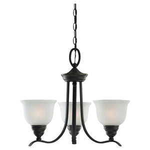 The Manufacturer Collection three light single tier chandelier in heirloom bronze enhances the beauty of your home with ample light and style to match today`s trends. The Collection lighting collection by Manufacturer is a tribute to versatility. The Satin Etched glass can be coupled with either a Brushed Nickel finish for a soft contemporary feel or an Heirloom Bronze finish for a more rustic charm. Collection delivers excellent transitional style that can fit within various home decor styles. The assortment includes nine-light, five-light, and three-light chandeliers, pendants in four sizes, both flush and semi-flush ceiling fixtures, as well as one-light, two-light, three-light and four-light wall/bath fixtures. Both incandescent lamping and ENERGY STAR-qualified LED lamping are available. Most of these fixtures easily convert to LED by purchasing LED replacement lamps sold separately.