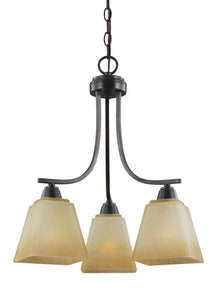 The Manufacturer Collection three light single tier chandelier in flemish bronze enhances the beauty of your home with ample light and style to match today`s trends. The subtle details of the Collection lighting collection by Manufacturer make this transitional design perfect for a wide range of d?�cor. The four-sided, glass shades and the supporting sockets feature a graduated step detail which gives each fixture a slightly more masculine and tailored look. Available in both a casual Flemish Bronze finish with Cr??me Parchment glass or the elegantly modern Brushed Nickel finish with Opal Etched glass, the full lighting collection offers a nine-light or five-light chandelier, a three-light down chandelier, a two-light semi-flush mount, a three-light up pendant, and one-light, two-light, three-light and four-light bath fixture (all of which can mount up or down). Incandescent and ENERGY STAR-qualified LED lamping are available.