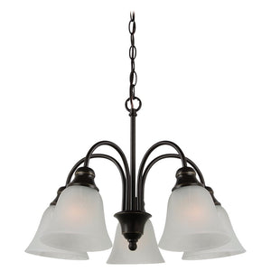 The Manufacturer Collection five light single tier chandelier in heirloom bronze enhances the beauty of your home with ample light and style to match today`s trends. The Collection lighting collection by Manufacturer is a sensibly, modernized and transitional selection of fixtures featuring clean lines and sophisticated Alabaster style glass. The collection works well with a variety of interiors, as it blends well into its surrounding decor. Offered in Brushed Nickel or Heirloom Bronze finishes, as well as a Chrome finish for the wall/bath fixtures only. The assortment includes five-light, and three-light chandeliers (either with up-light or down-light), pendants in four sizes, both flush and semi-flush ceiling fixtures, as well as one-light, two-light, three-light and four-light wall/bath fixtures. Both incandescent lamping and ENERGY STAR-qualified LED lamping are available. Most of these fixtures easily convert to LED by purchasing LED replacement lamps sold separately.