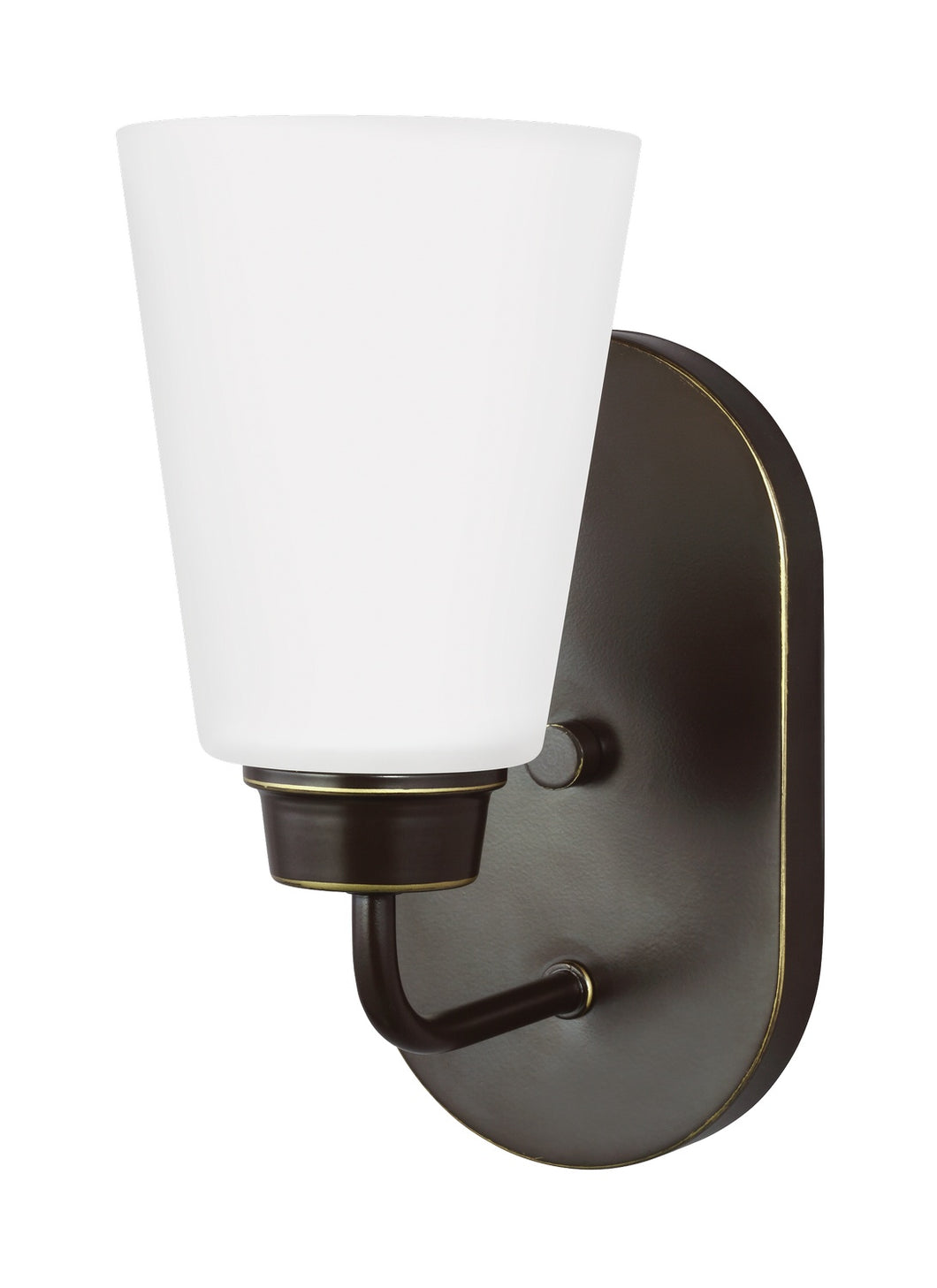 The Manufacturer Collection one light wall sconce in heirloom bronze offers shadow-free lighting in your powder room, spa, or master bath room. With a simple, airy appearance, the Collection lighting collection by Manufacturer embraces its modern design roots while enhancing virtually any home?��s decor. Tubular steel arms extend outward and curve to present beautiful tapered, Satin Etched glass shades. The collection has a Brushed Nickel, Burnt Sienna or Chrome finish and offers three-, five- and nine-light chandeliers, a one-light mini pendant, one- and three-light pendants, a two-light semi-flush mount which can convert to a pendant, and one-, two-, three- and four-light bath fixtures. Incandescent and ENERGY STAR-qualified LED lamping are available, all fixtures are California Title 24 compliant.