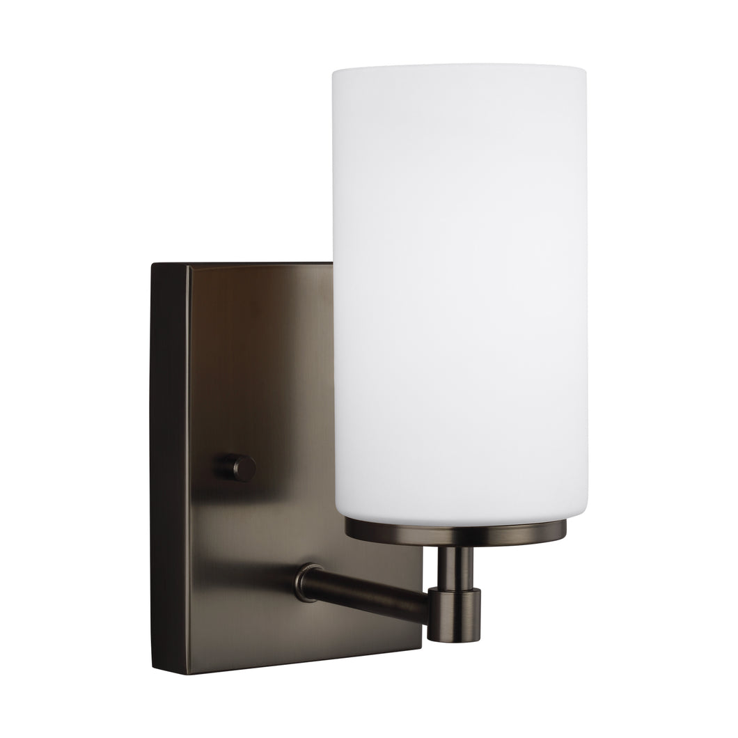 The Sea Gull Collection Alturas one-light wall sconce in the brushed oil rubbed bronze finish will complement other fixture within your lighting design. The sleek and contemporary silhouette of this task light features an interlocking, spherical steel frame, while drawing an eye to the soft, warm glow of the light emitted from the cylindrical Satin Etched glass shades. If you are starting to convert to a more sustainable lifestyle, this ENERGY STAR® qualified lighting fixture uses LED bulbs to save you both time and money. The Sea Gull Collection by Generation Lighting has been an industry leader since 1919. Sea Gull`s promise is simple – to create beautiful lighting at an affordable value. From space, to function, to style and energy efficiency, Sea Gull offers complete solutions.