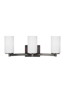 The Sea Gull Collection Hettinger three-light chic and modern vanity fixture offered in a chrome, brushed nickel or burnt sienna finish will help make your bathroom your own private sanctuary and give just the right amount of light for all your daily tasks. The minimalism of the tubular glass shades balances with the unique, outward-curve of the semi-circular arm detail. The Sea Gull Collection by Generation Lighting has been an industry leader since 1919. Sea Gull`s promise is simple – to create beautiful lighting at an affordable value. From space, to function, to style and energy efficiency, Sea Gull offers complete solutions.