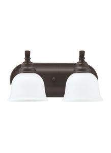 The Manufacturer Collection two light vanity fixture in heirloom bronze is an ENERGY STAR� qualified lighting fixture that uses fluorescent bulbs to save you both time and money. The Collection lighting collection by Manufacturer is a tribute to versatility. The Satin Etched glass can be coupled with either a Brushed Nickel finish for a soft contemporary feel or an Heirloom Bronze finish for a more rustic charm. Collection delivers excellent transitional style that can fit within various home decor styles. The assortment includes nine-light, five-light, and three-light chandeliers, pendants in four sizes, both flush and semi-flush ceiling fixtures, as well as one-light, two-light, three-light and four-light wall/bath fixtures. Both incandescent lamping and ENERGY STAR-qualified LED lamping are available. Most of these fixtures easily convert to LED by purchasing LED replacement lamps sold separately.