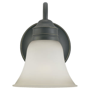 The Manufacturer Collection one light wall sconce in heirloom bronze offers shadow-free lighting in your powder room, spa, or master bath room. Moving beyond traditional styling, the Collection bath collection by Manufacturer is all about today`s transitional, comfortable lifestyles. A perfect example of less is more and controlled design allows the understated curves and bell shaped glass to be the statement. Offered in Antique Brushed Nickel and Chrome finishes with Satin Etched glass, and Heirloom Bronze finish with Smoky Amber Glass. The assortment includes one-light, two-light, three-light, four-light, five-light and six-light wall/bath fixtures. Both incandescent lamping and ENERGY STAR-qualified LED lamping are available. All fixtures are California Title 24 compliant.