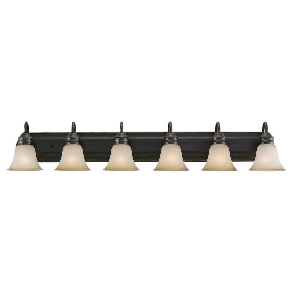 The Manufacturer Collection six light vanity fixture in heirloom bronze provides abundant light for your bath vanity, while adding a layer of today`s style to your interior design. Moving beyond traditional styling, the Collection bath collection by Manufacturer is all about today`s transitional, comfortable lifestyles. A perfect example of less is more and controlled design allows the understated curves and bell shaped glass to be the statement. Offered in Antique Brushed Nickel and Chrome finishes with Satin Etched glass, and Heirloom Bronze finish with Smoky Amber Glass. The assortment includes one-light, two-light, three-light, four-light, five-light and six-light wall/bath fixtures. Both incandescent lamping and ENERGY STAR-qualified LED lamping are available. All fixtures are California Title 24 compliant.