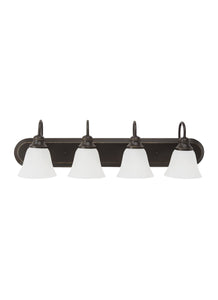 The Manufacturer Collection four light vanity fixture in heirloom bronze is an ENERGY STAR� qualified lighting fixture that uses fluorescent bulbs to save you both time and money. The Collection lighting collection by Manufacturer is a sensibly, modernized and transitional selection of fixtures featuring clean lines and sophisticated Alabaster style glass. The collection works well with a variety of interiors, as it blends well into its surrounding decor. Offered in Brushed Nickel or Heirloom Bronze finishes, as well as a Chrome finish for the wall/bath fixtures only. The assortment includes five-light, and three-light chandeliers (either with up-light or down-light), pendants in four sizes, both flush and semi-flush ceiling fixtures, as well as one-light, two-light, three-light and four-light wall/bath fixtures. Both incandescent lamping and ENERGY STAR-qualified LED lamping are available. Most of these fixtures easily convert to LED by purchasing LED replacement lamps sold separately.