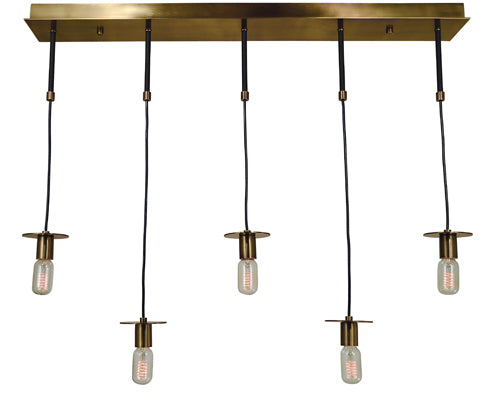 Exposed wires suspending the lights add a rustic touch to the minimalist frames. Finish options allow these to migrate well from traditional to contemporary environments. Made in the US.