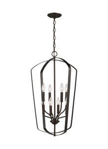 The Sea Gull Collection Romee eight light indoor pendant in bronze is a playful, yet simple spin on the classic lantern. With clean lines and elegant lamping holders makes Romee the perfect addition to any space without taking the spotlight from the decor, but will illuminate with superb class. The full Romee series is available in three beautiful finishes Brushed Nickel, Chrome and Heirloom Bronze with three and six light options, making it easy to add Romee to any decor.