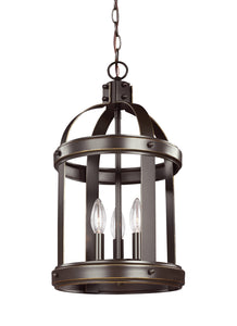 The Manufacturer Collection three light indoor pendant in heirloom bronze supplies ample lighting for your daily needs, while adding a layer of today`s style to your home`s decor. The Collection lighting collection by Manufacturer is an attention grabbing addition to any room. The cylindrical profile features historically inspired strapping detail which is updated by the use of the open, airy frame. The bird cage-like lighting design is especially striking when used in pairs or multiples. The contrasting Faux-wood finish option and steel form is a scene stealing addition to any foyer and can also be beautifully paired or clustered together over a kitchen island or dining room table. The assortment includes a large four-light foyer pendant, a medium three-light foyer pendant and a small three-light foyer pendant. The candelabra base collection is offered in incandescent and ENERGY STAR-qualified LED lamping. All fixtures are California Title 24 compliant.