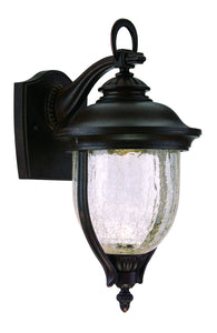 The Sheffield Collection comes in Mystic Bronze with Clear Crackle glass. This Traditional Sheffield 7 in. LED Wall Lantern will complement the decor in any room of your home. Made with solid steel construction to look great and last for years to come.